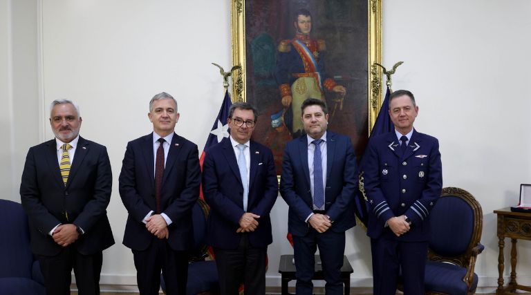 El ministro de Defensa Nacional, Fernando Barros, recibió este viernes en dependencias ministeriales, el saludo protocolar del embajador de Israel en Chile, Peleg Lewi.